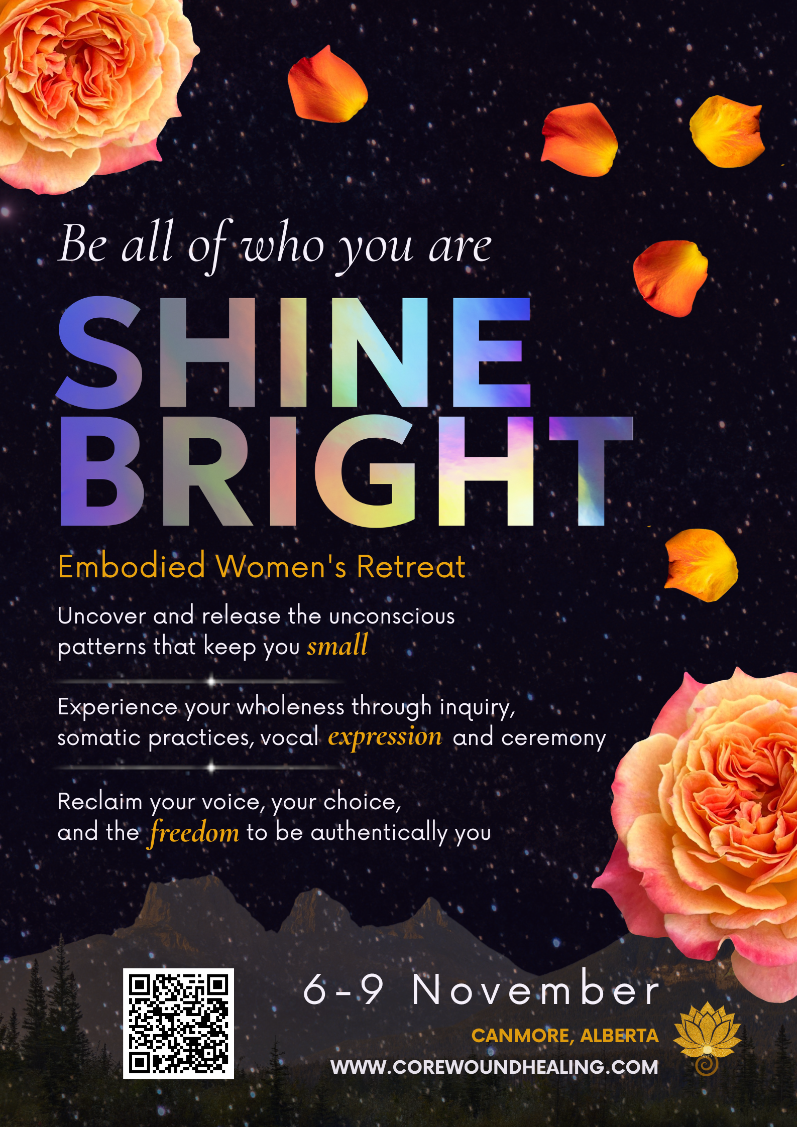 SHINE BRIGHT is an immersive experience for women ready to be seen and heard, and no longer held back by old, unconscious patterns.